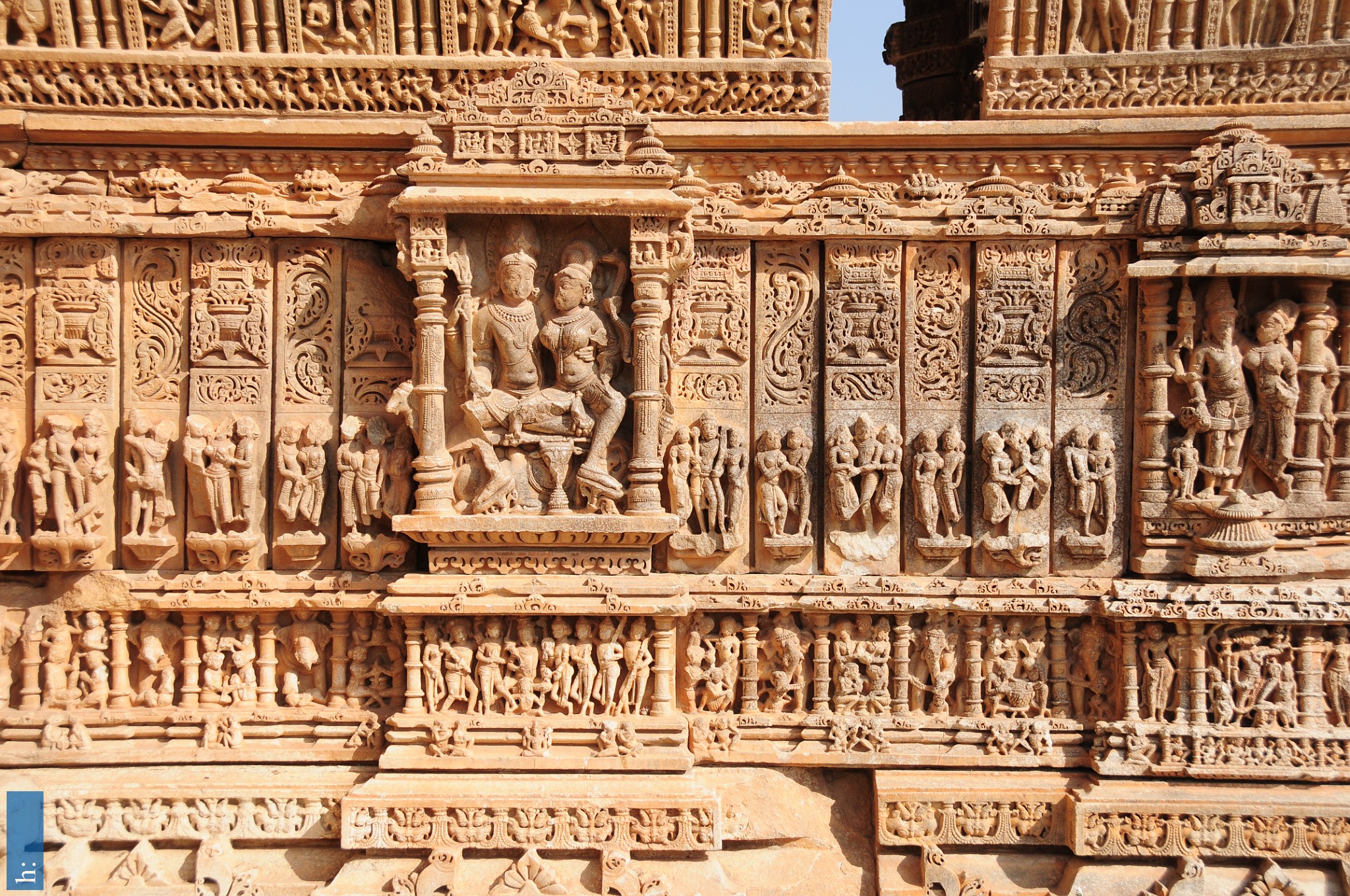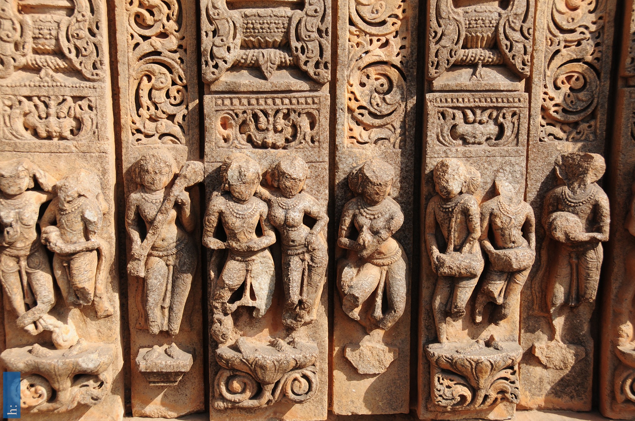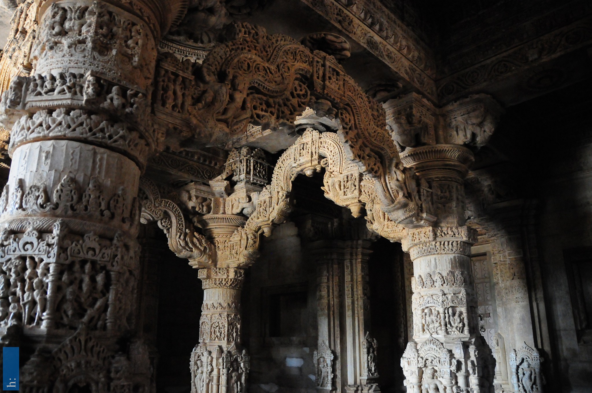 Die beiden Tempel verfügen über einen Portikus mit einem pyramidalen Aufbau, der Zutritt zu einer offenen Pfeilerhalle (mandapa) mit seitlichen Vorsprüngen…