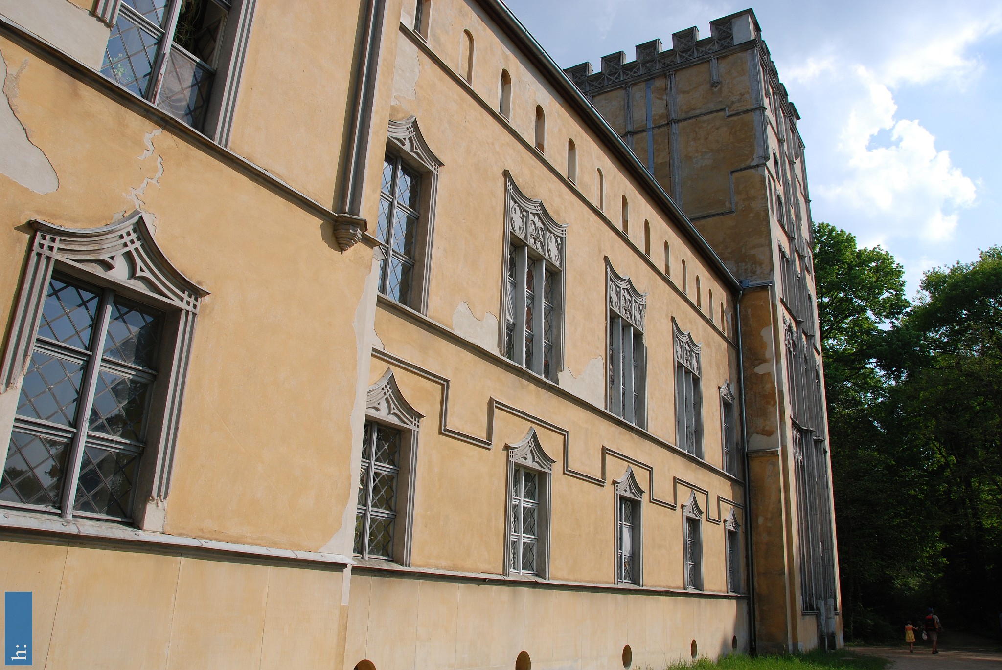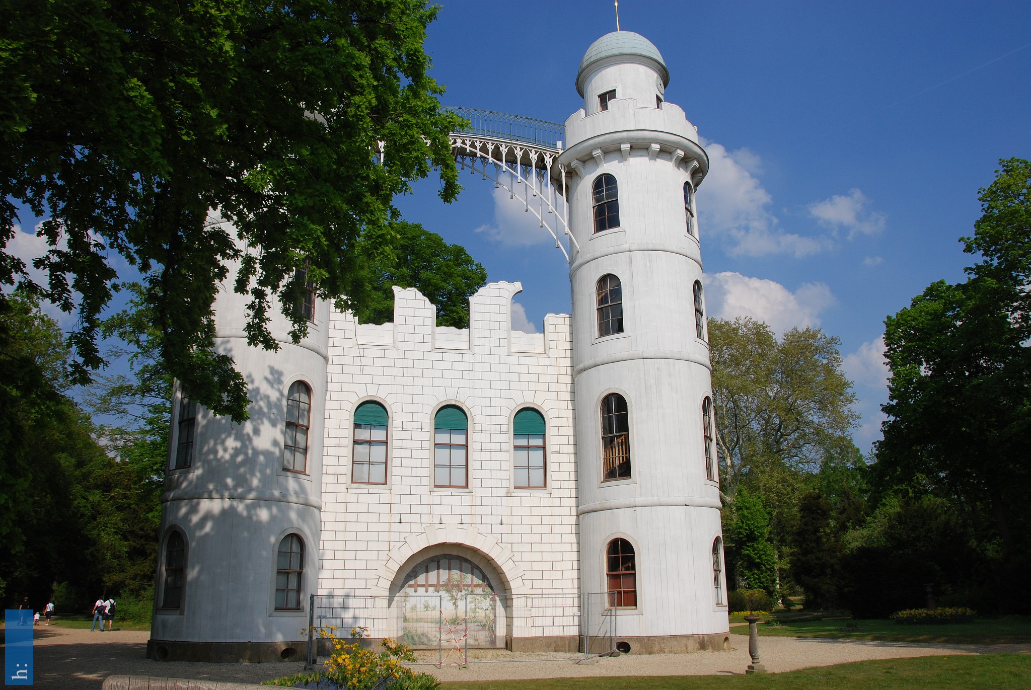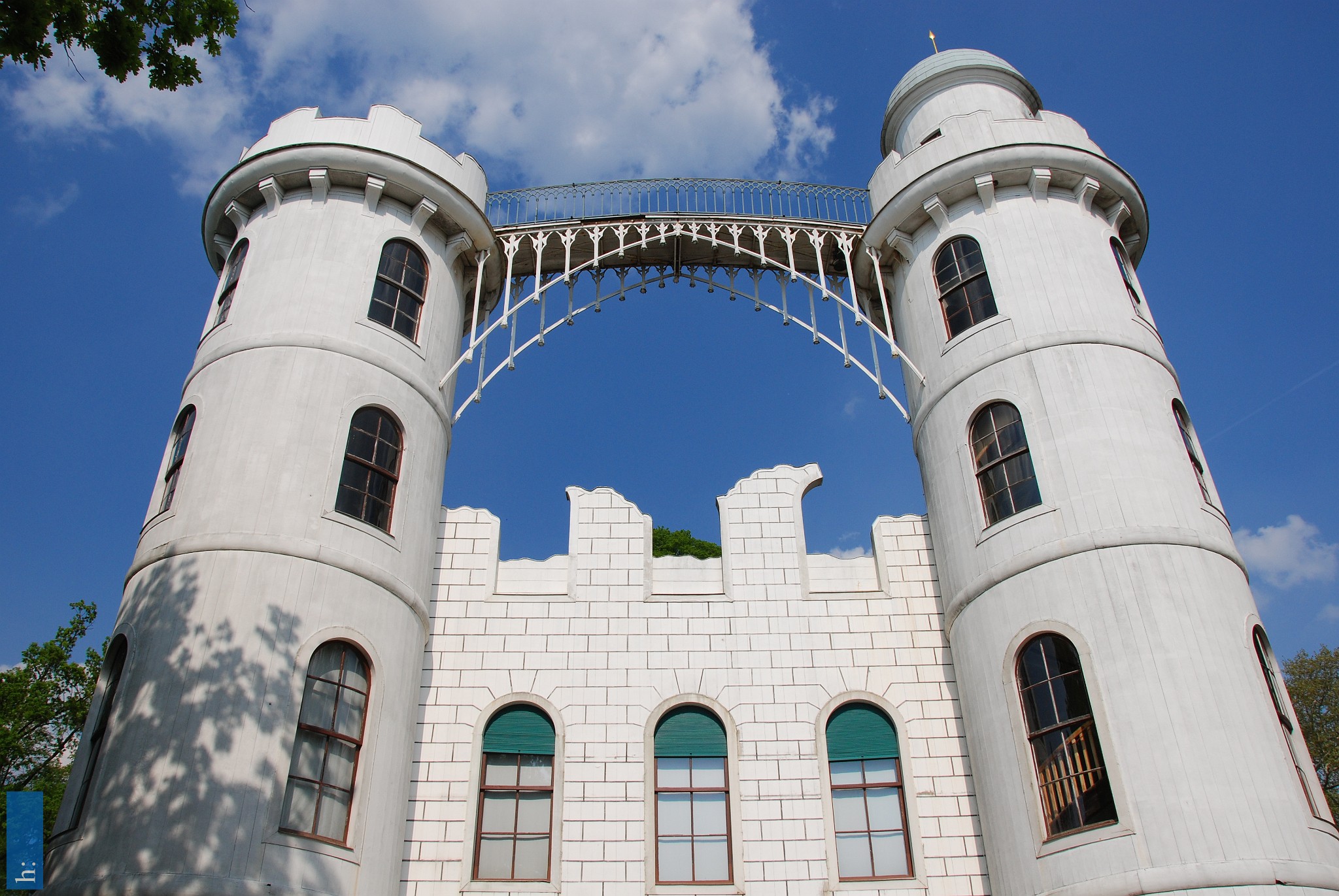 Weithin sichtbar ist das 1794 erbaute weiße Schloss mit den charakteristischen Türmen und der sie verbindenden Brücke. Von hier schweift der Blick über…