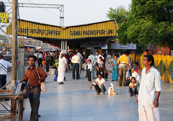 Von Ranthambore nach Agra: Der Zielbahnhof nach 300 km Zugfahrt. Die Türen werden während der Fahrt übrigens nicht geschlossen. In Indien ist alles etwas…