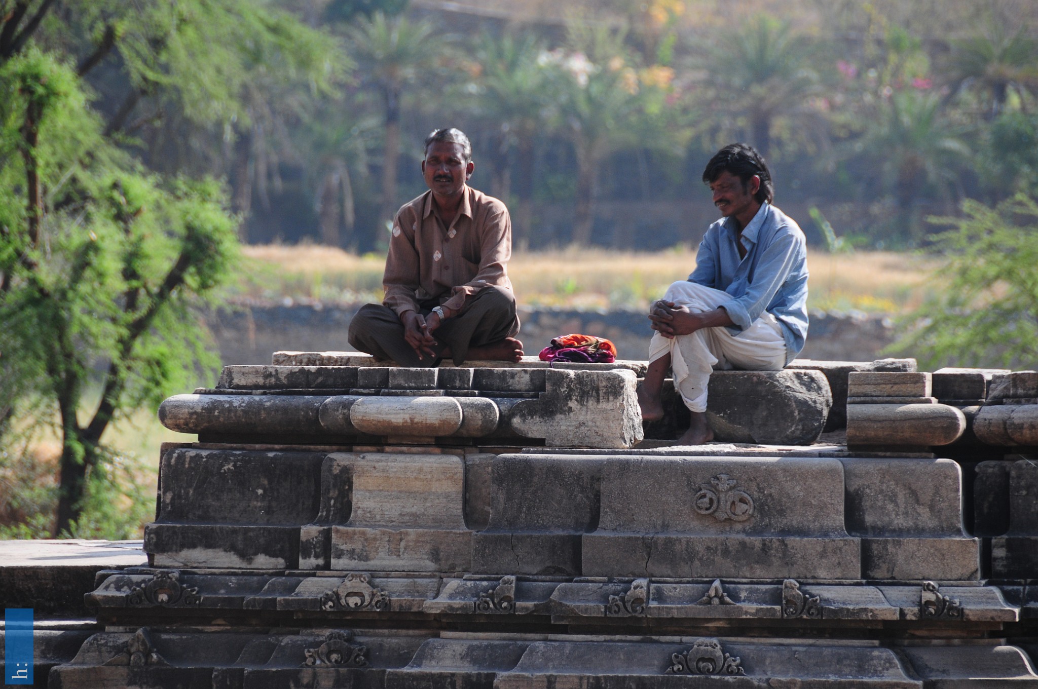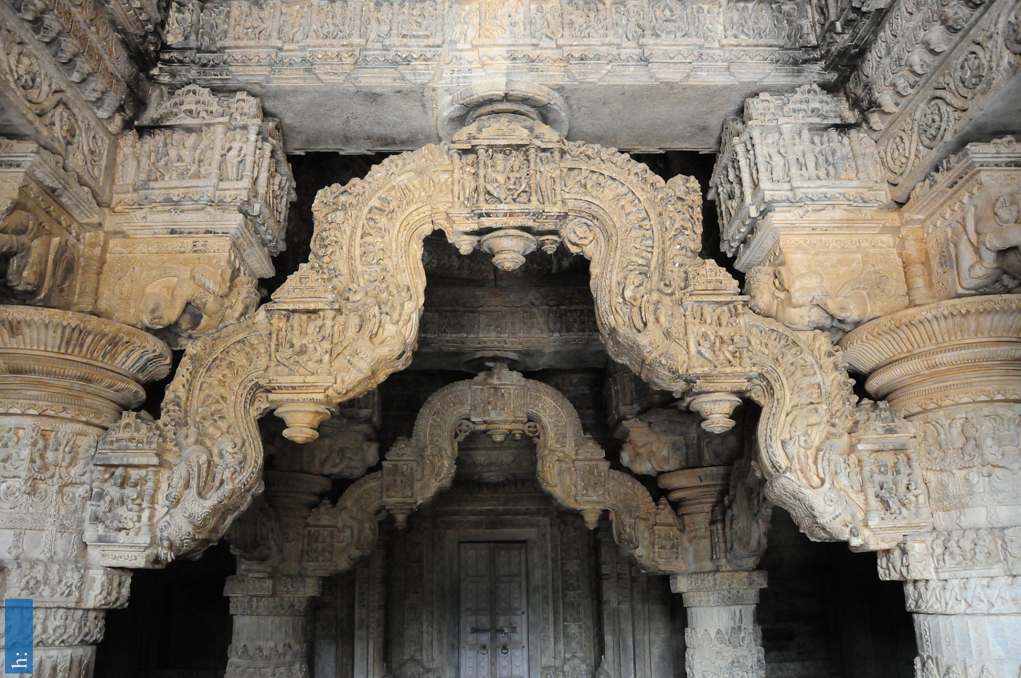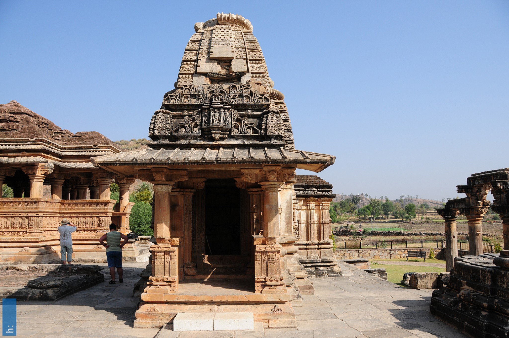Die beiden Tempel verfügen über einen Portikus mit einem pyramidalen Aufbau, der Zutritt zu einer offenen Pfeilerhalle (mandapa) mit seitlichen Vorsprüngen…