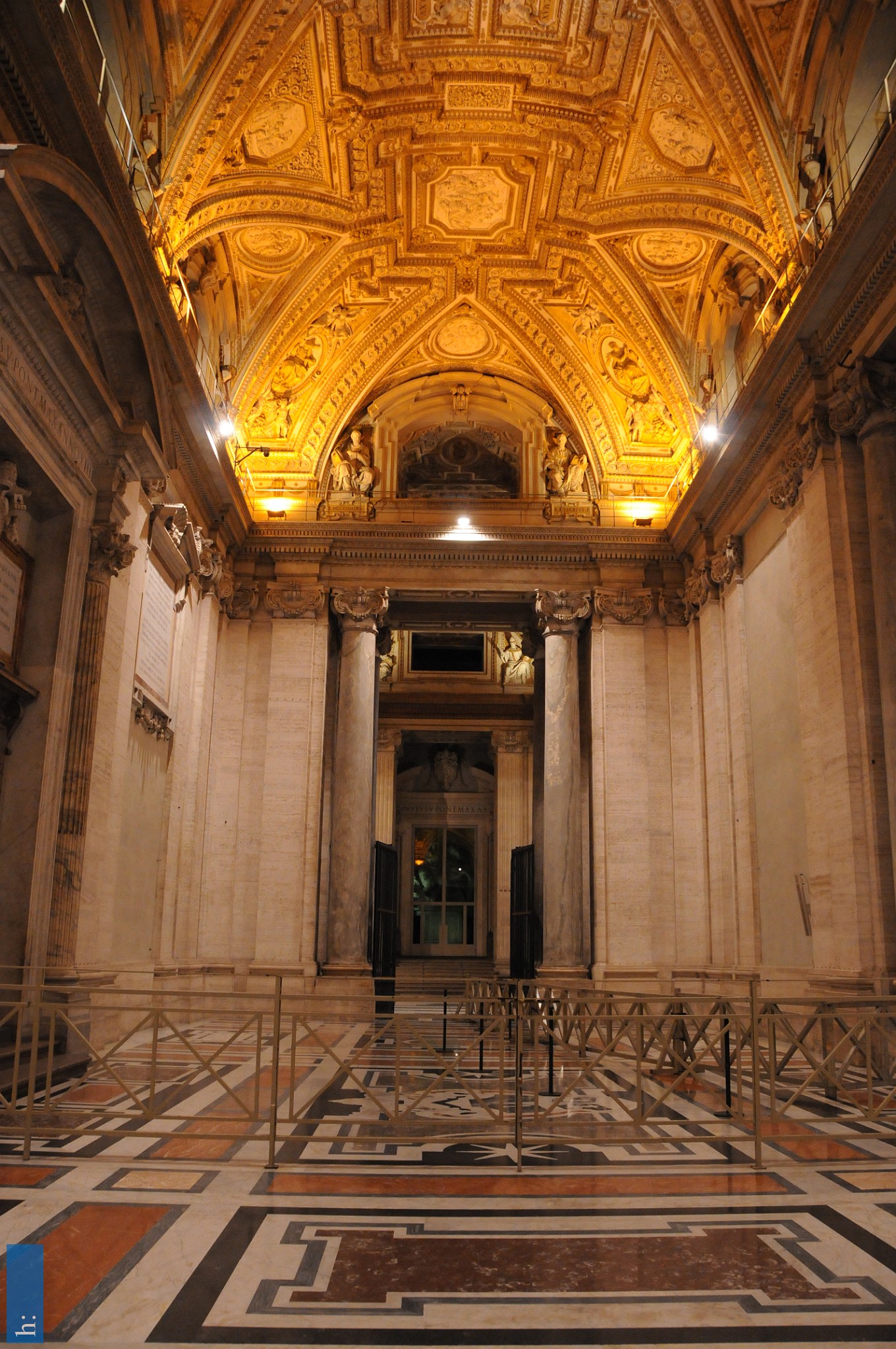Von der Vorhalle gelangt man durch die Bronzetür des Filarete in das Innere der Basilika, daneben befindet sich die Porta Santa, die nur während eines Heiligen…
